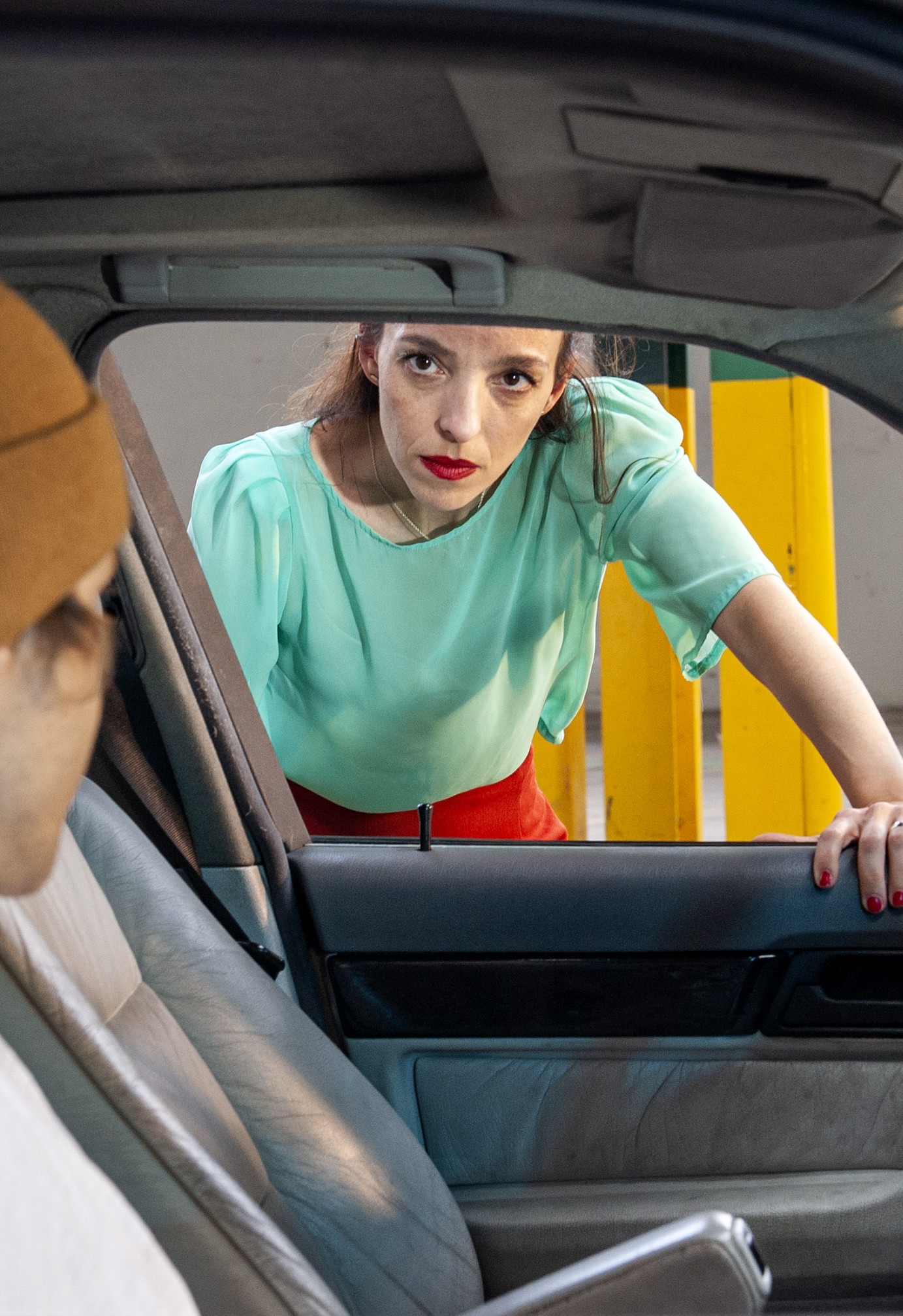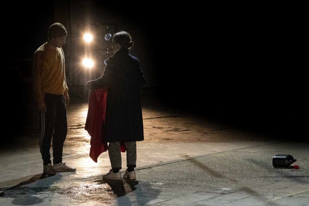 théâtre, mais dans un parking, dans un hangar. La mère et le fils sont en route