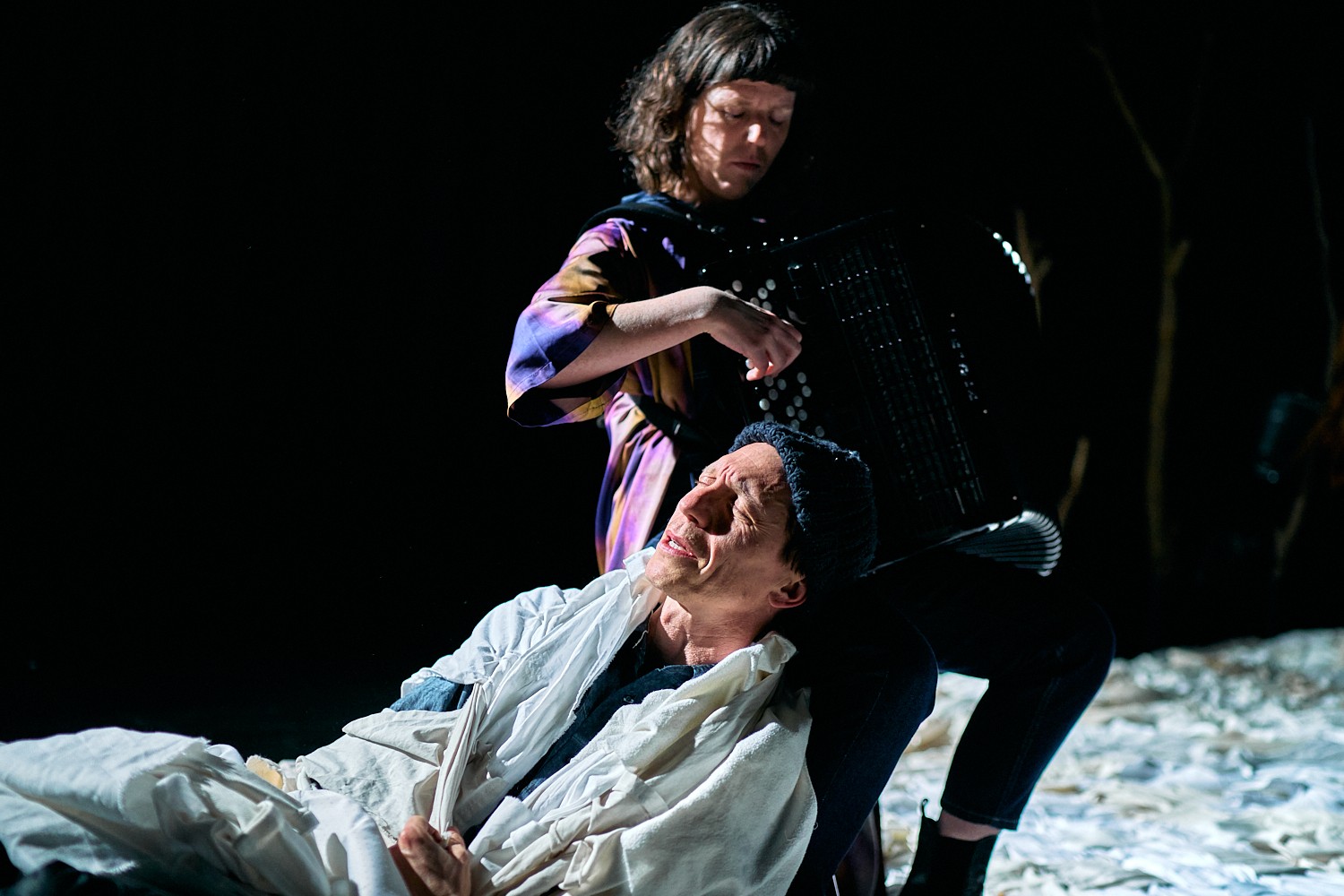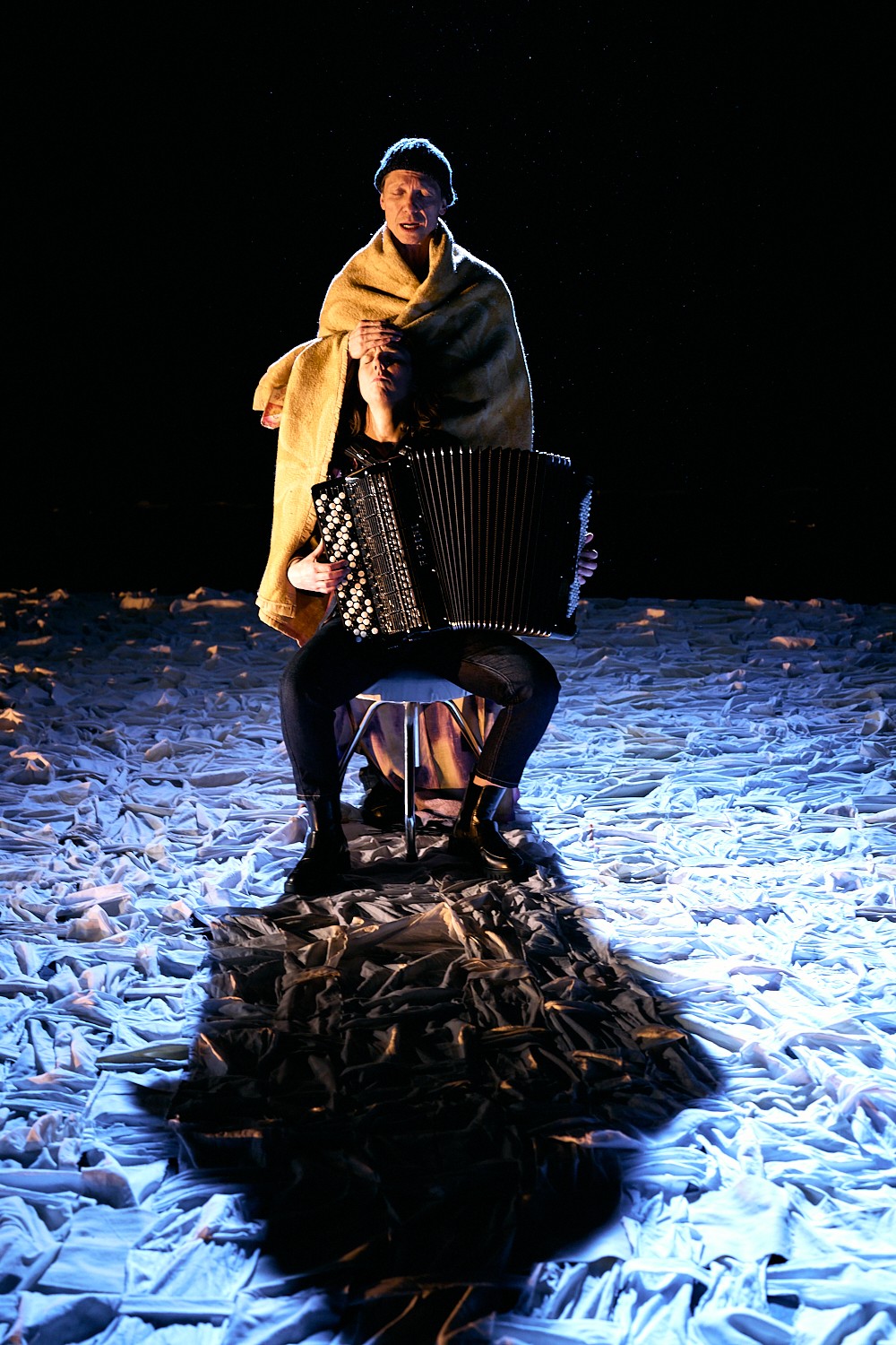 Création : Sara Salvérius (accordéon & jeu), Valentijn Dhaenens (concept & jeu) et Chloé Wasselin Dandre (scénographie & costumes)