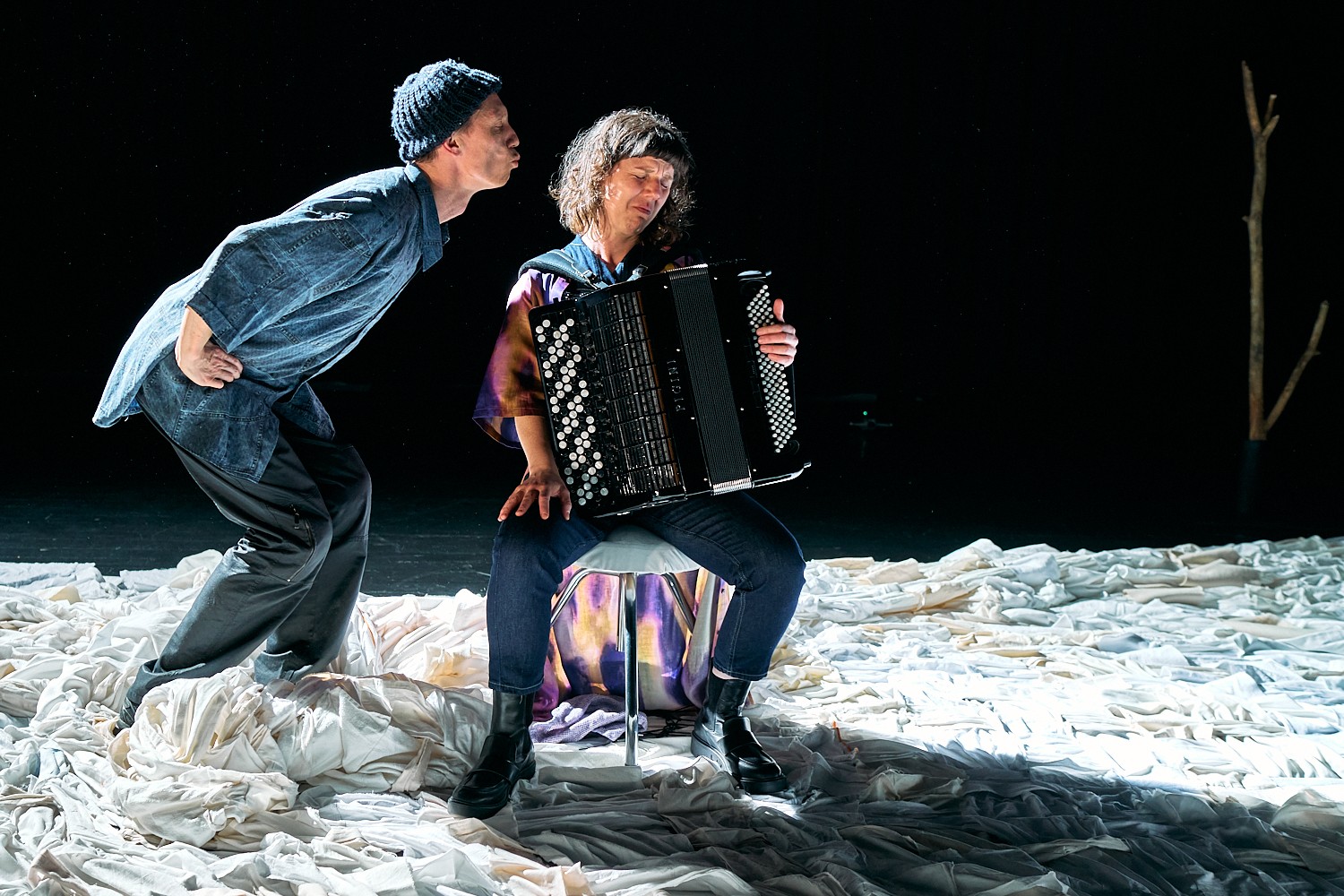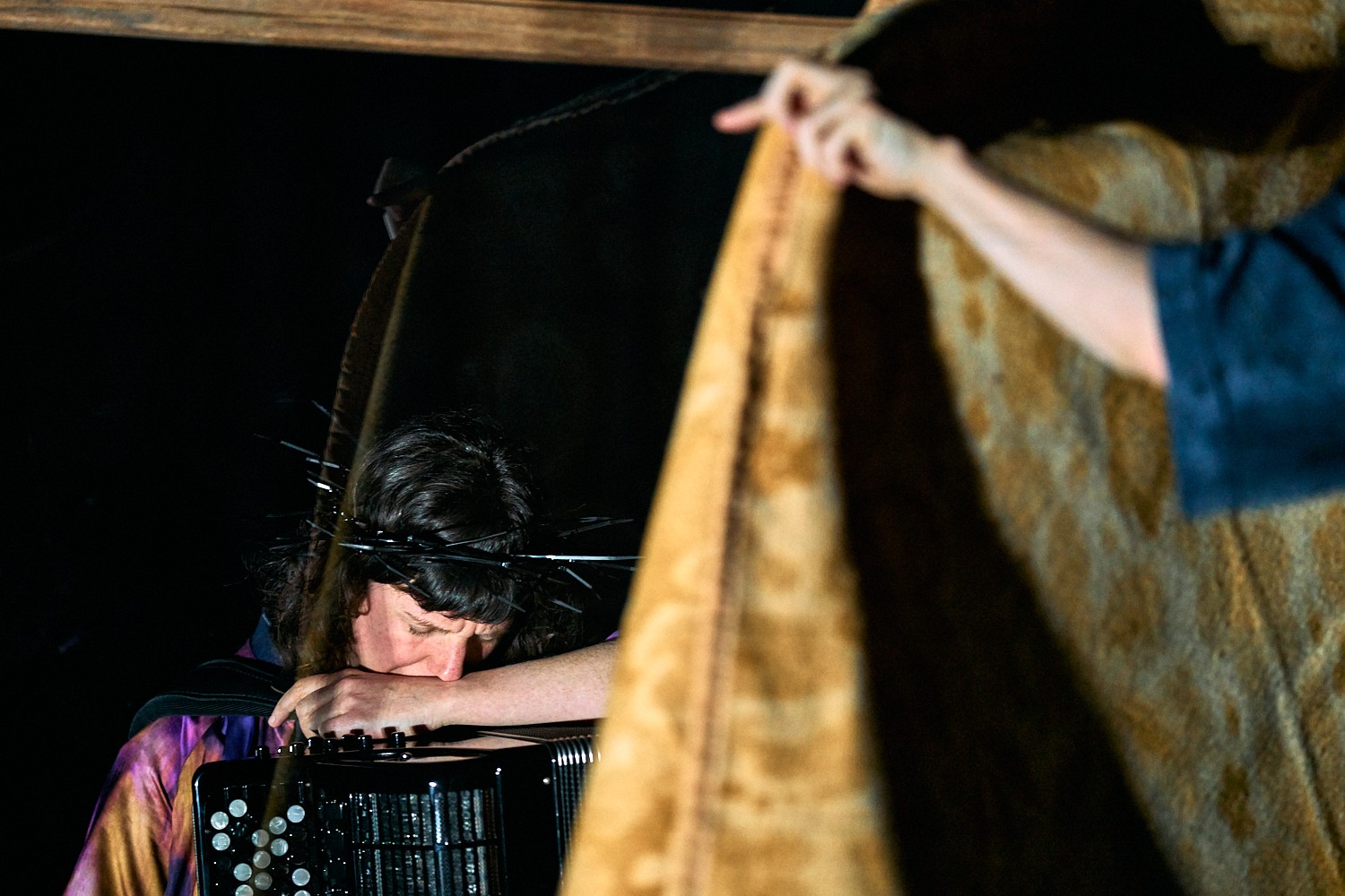 Creatie: Sara Salvérius (accordeon & spel), Valentijn Dhaenens (concept & spel) en Chloé Wasselin Dandre (scenografie & kostuumontwerp)