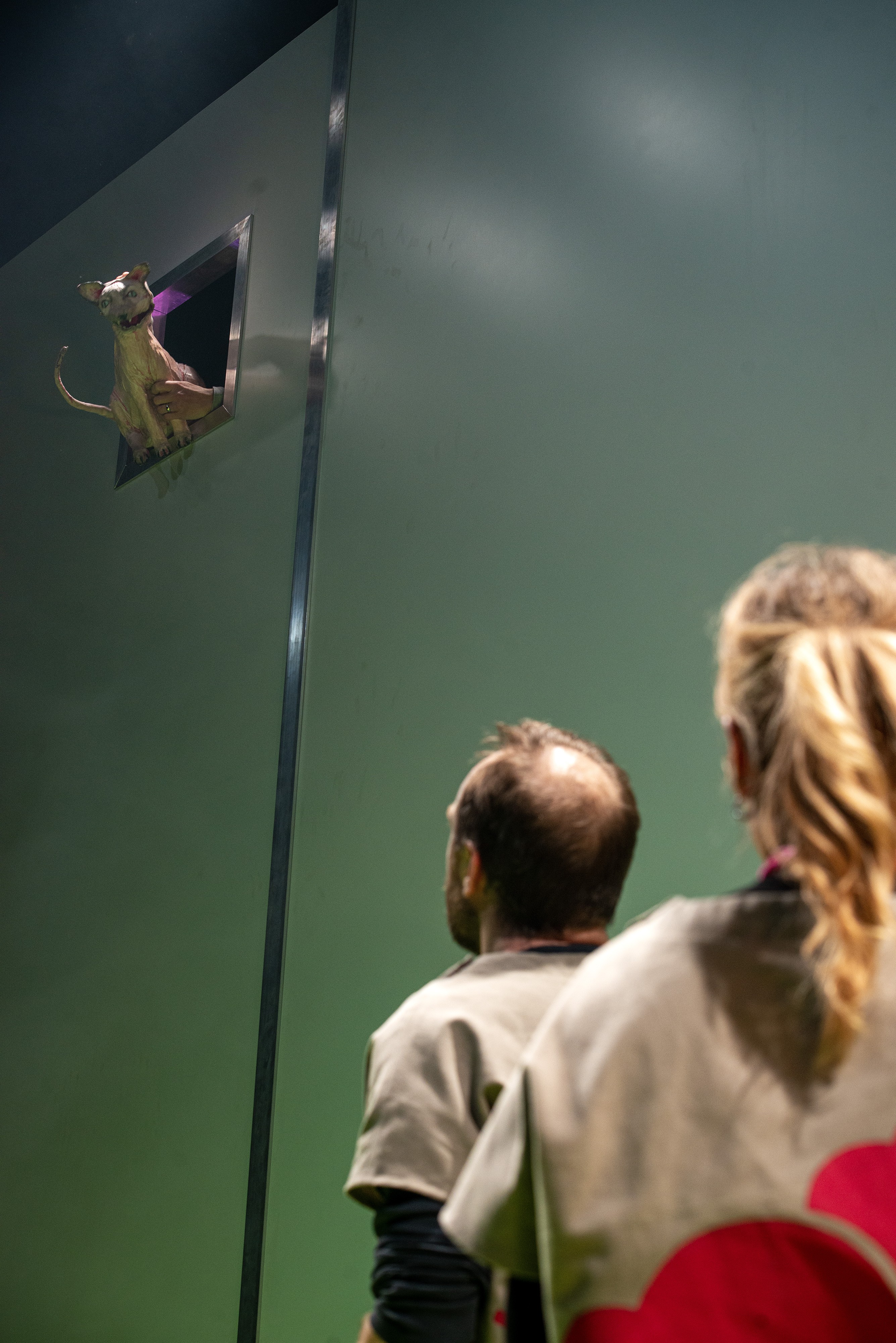 SKaGeN does not usually play repertoire. Once again, they do not bring this to a happy ending: in their typical manner, this classic is dismantled and transformed into a light but relevant spectacle. SKaGeN's actors, complemented by two guest actors, are back on stage in full for the first time in years. The company thus demonstrates its own need to connect and continue its own legacy.