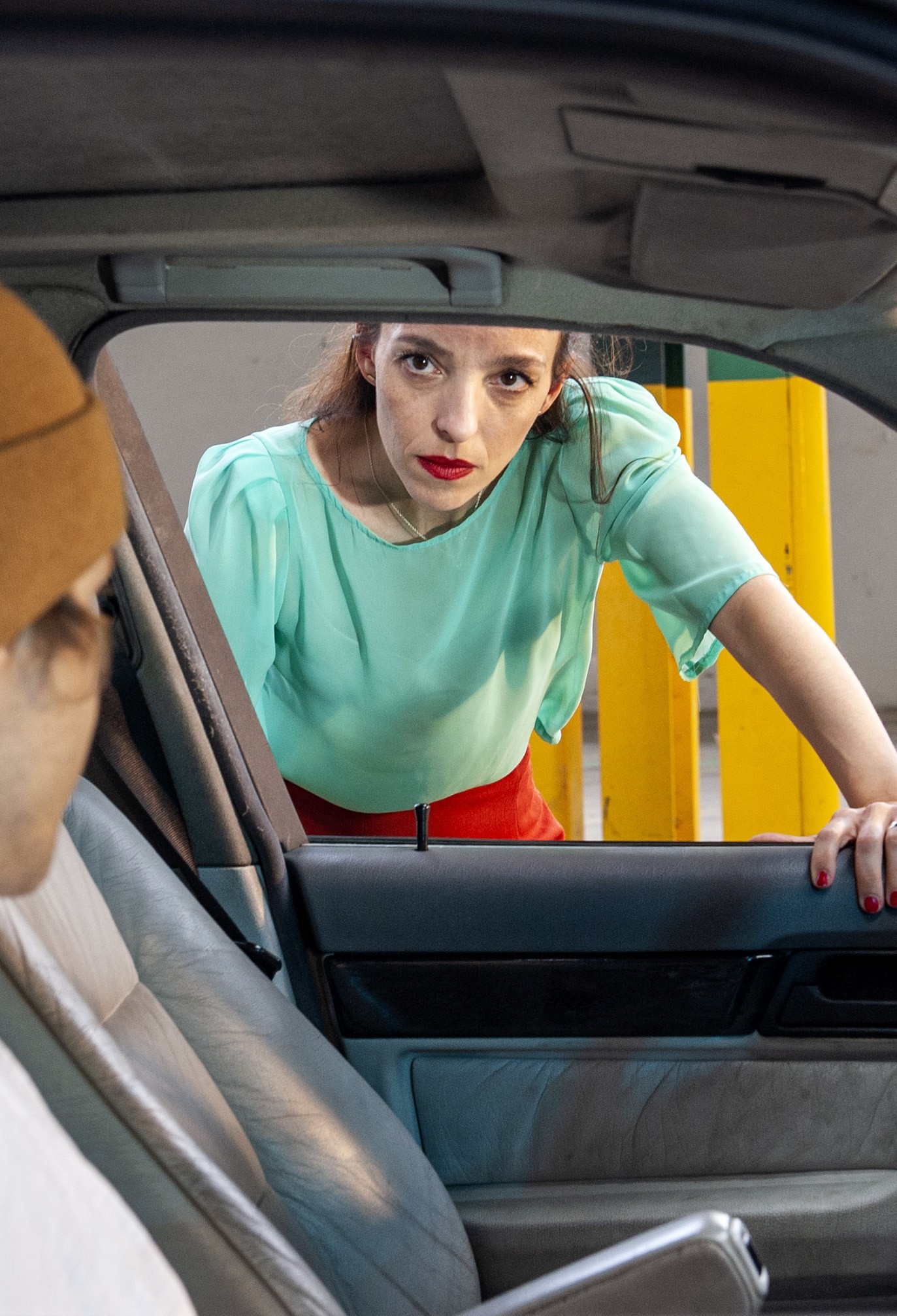 théâtre, mais dans un parking, dans un hangar. La mère et le fils sont en route