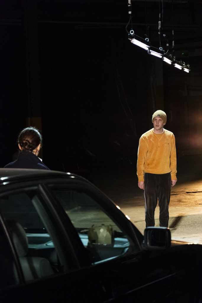 La représentation ne se déroule pas dans l'intimité d'un théâtre, mais dans un parking, dans un hangar. La mère et le fils sont en route en voiture. Ils se disputent férocement. Ils s'arrêtent pour en parler. En parler, cela dure tout le spectacle. Monter et descendre de voiture, sans savoir par où commencer, où aller, où retourner. Jusqu'à ce qu'ils arrivent quelque part. Le spectateur en est témoin.